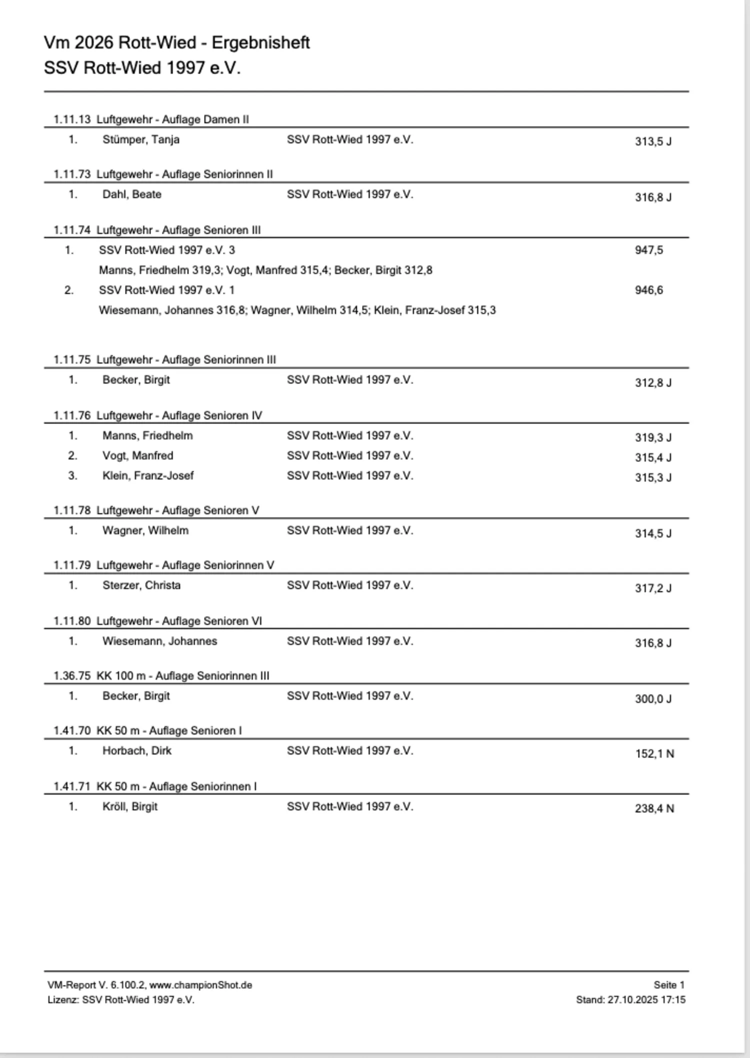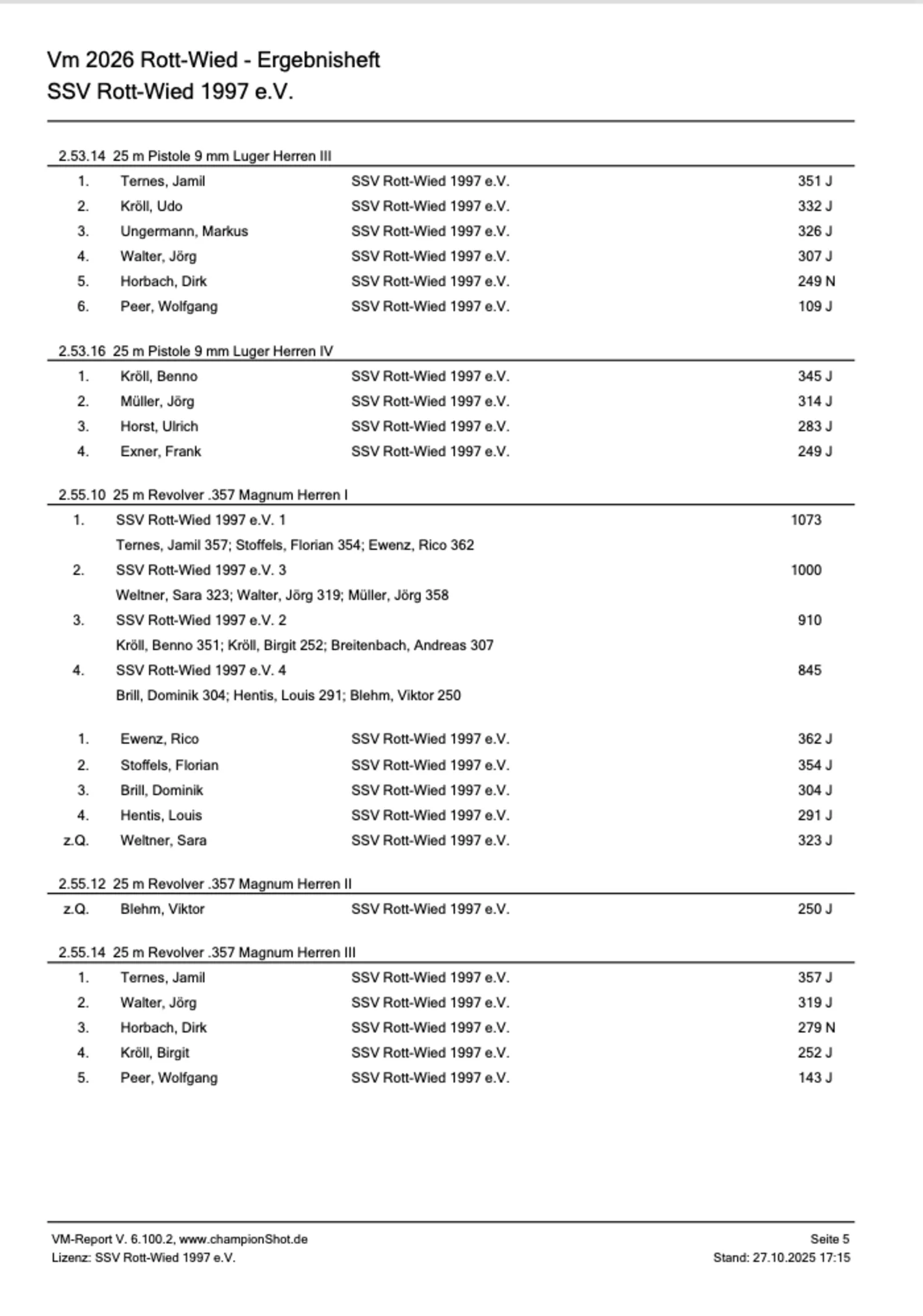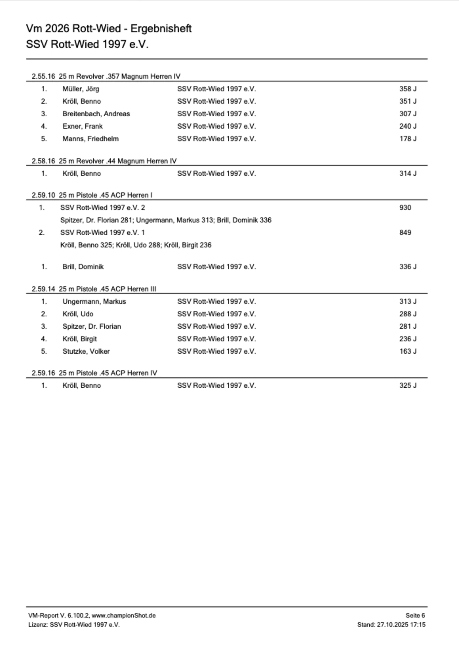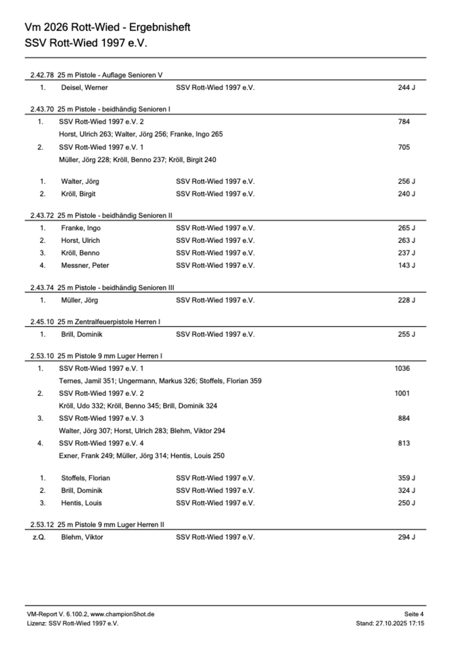 RSV Landesverbandsmeisterschaften 2025 - ErgebnisheftRheinischer Schützenbund e.V. 1872